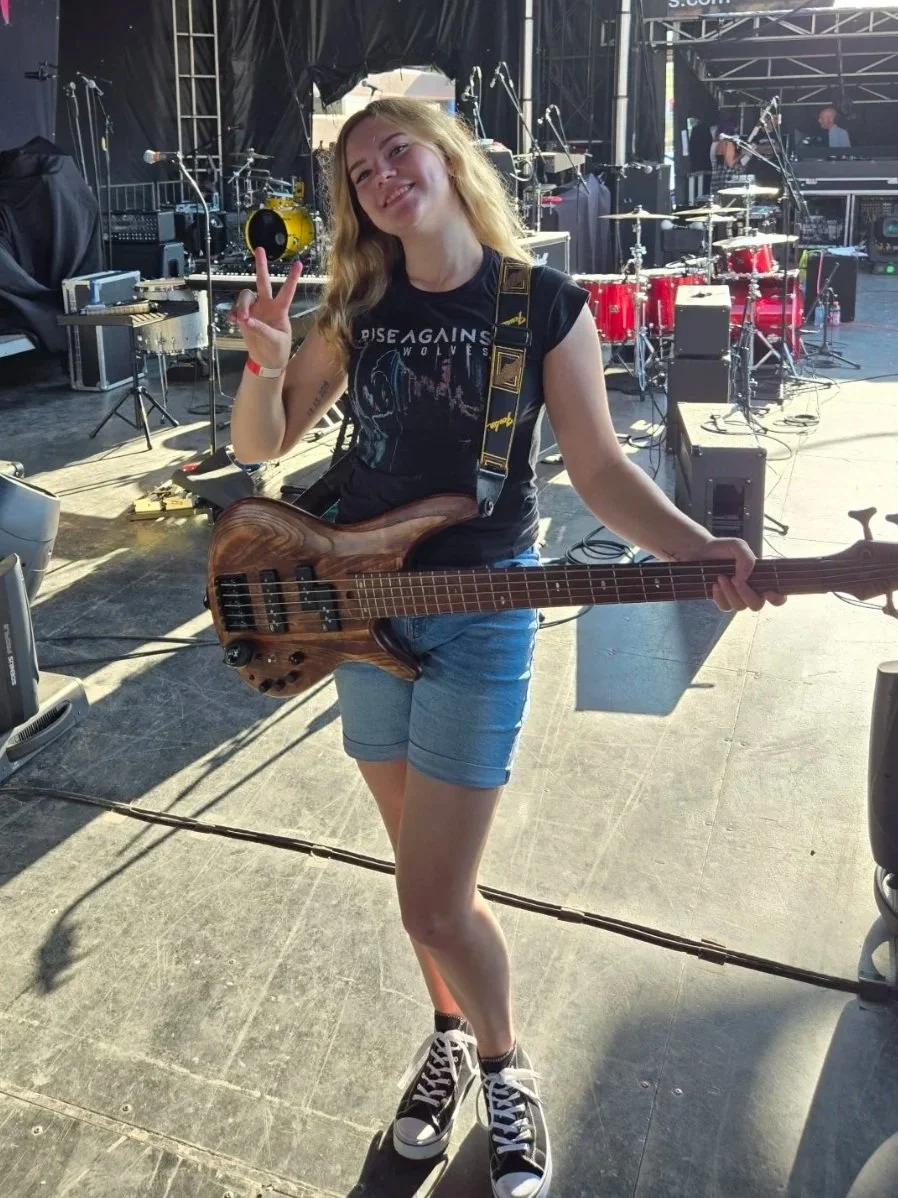 This chick rocks! Kaitlyn Childs is a powerhouse bass player who electrifies the stage with her dynamic energy and presence. Born into a musical family, she picked up the bass at age six and never looked back. Her fierce performances and passion for music make her the heartbeat of The Bloodshots’ signature sound